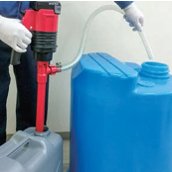 そこでエイチツーでは、苛性ソーダ・硫酸でも使用可能なポリ缶用のポンプをご提案します。